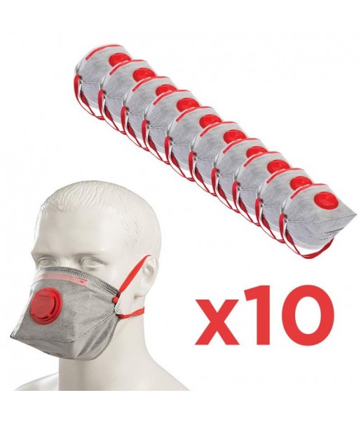 Pack de 10 Masques de protection respiratoire pliable à valve d'expiration FFP3 NR
