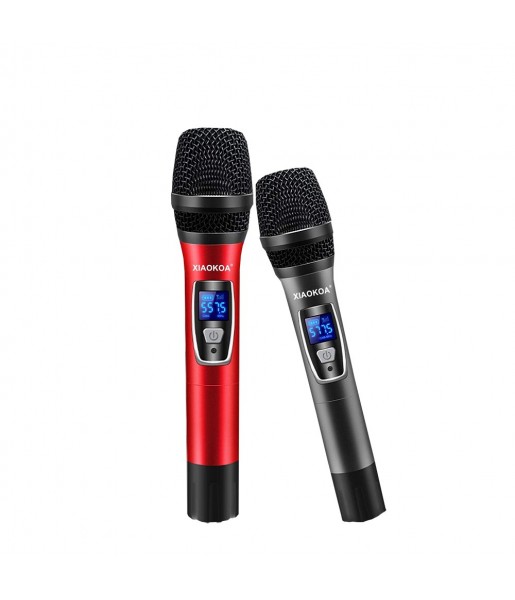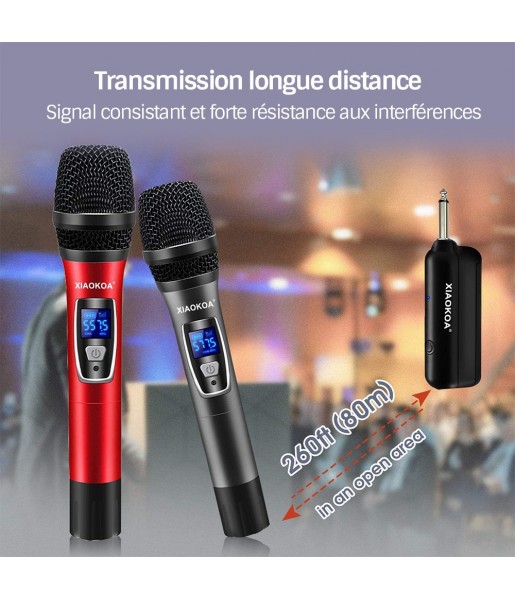 Paire microphone Karaoké Sans Fil UHF Double Canal Portatif Cardioïde Faible Distorsion, Récepteur Rechargeable 80m 1800mAh