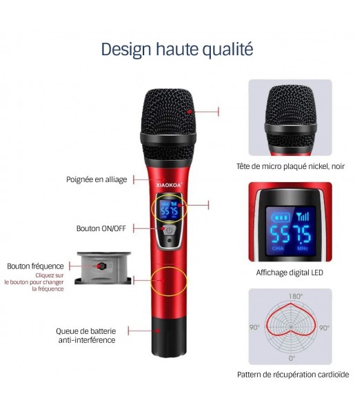 Design ergonomique : Rouge et noir, confortable à tenir, parfait pour les longues sessions de chant ou de discours.