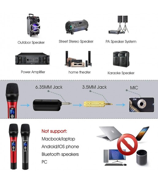 Ces caractéristiques font de la Paire microphone Karaoké Sans Fil UHF Double Canal un choix idéal pour ceux qui recherchent la simplicité d’utilisation et la performance audio professionnelle.