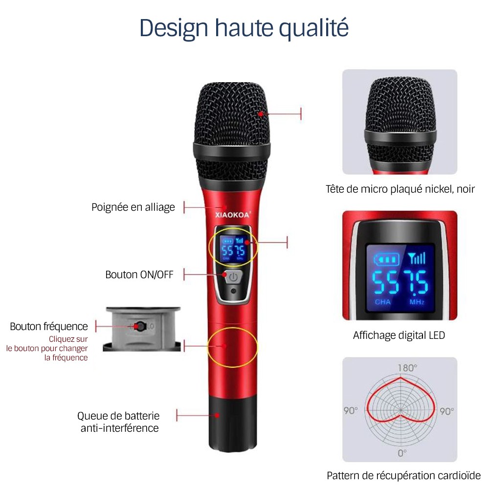 Découvrez la Paire microphone Karaoké Sans Fil UHF Double Canal, un outil performant pour tous vos moments de chant et de prise de parole. Conçue pour offrir une expérience audio exceptionnelle, cette paire de microphones sans fil combine praticité, puissance et design élégant, avec un écran LED bleu pour un suivi précis des signaux, fréquences et niveaux de puissance. Que ce soit pour une soirée karaoké à la maison, une célébration en famille, un service religieux ou une conférence professionnelle, ces microphones garantissent une qualité sonore claire et sans interférences.