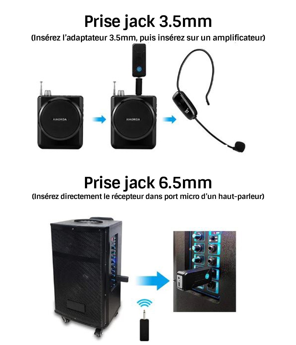 • Connectivité polyvalente : prises Jack 3.5 mm et 6.35 mm pour se connecter facilement à un amplificateur vocal, une table de mixage ou des haut-parleurs.