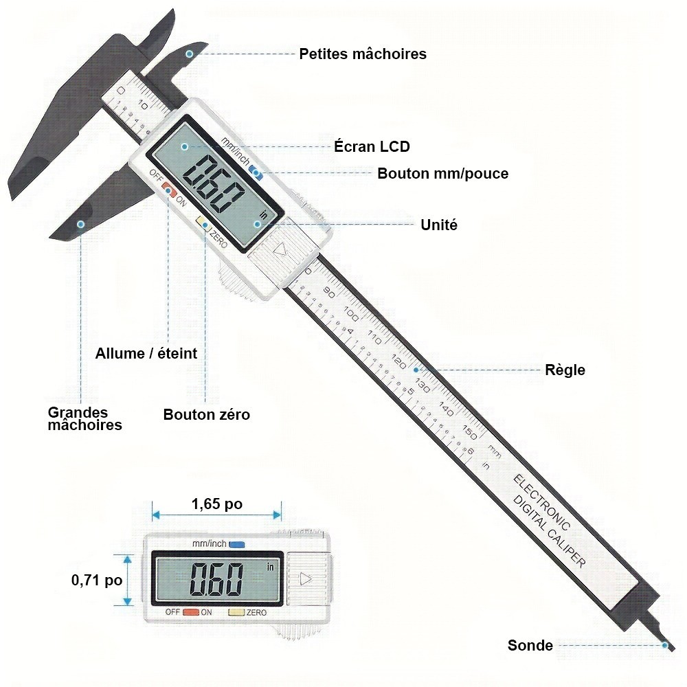 Découvrez le pied à coulisse numérique 6 pouces avec écran LCD. Mesure fiable, légère et simple d’utilisation. Idéal bricolage et usage domestique.