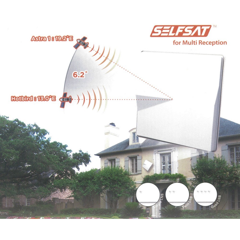Antenne Satellite plate Selfsat H50M - LNB single - Double polarisation - Réception bisatellite : performance, discrétion et double réception