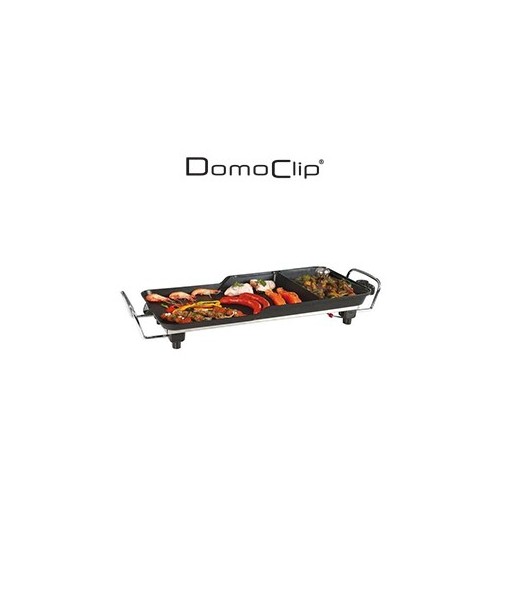 La Plancha gril mijoteuse - 3 en 1 DomoClip DOC132 combine plancha, gril et mijoteuse pour cuire viandes, poissons et légumes de façon saine et savoureuse. Polyvalente, facile à utiliser et simple à nettoyer, elle offre contrôle précis, sécurité et confort pour des repas réussis en famille ou entre amis.