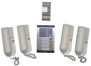 • Kit complet incluant 4 combinés interphone 6 fils et 1 platine de rue