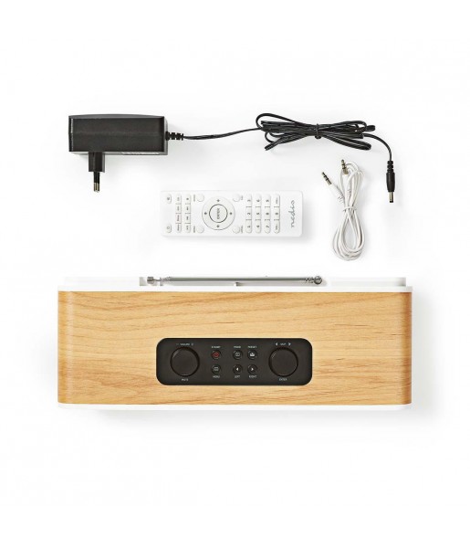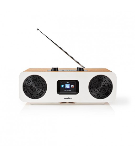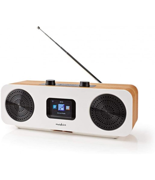 Radio internet Bluetooth WiFi DAB+ FM - Écran couleur, 34 W, Télécommandé, Application contrôlée, Réveil, Blanc Bois