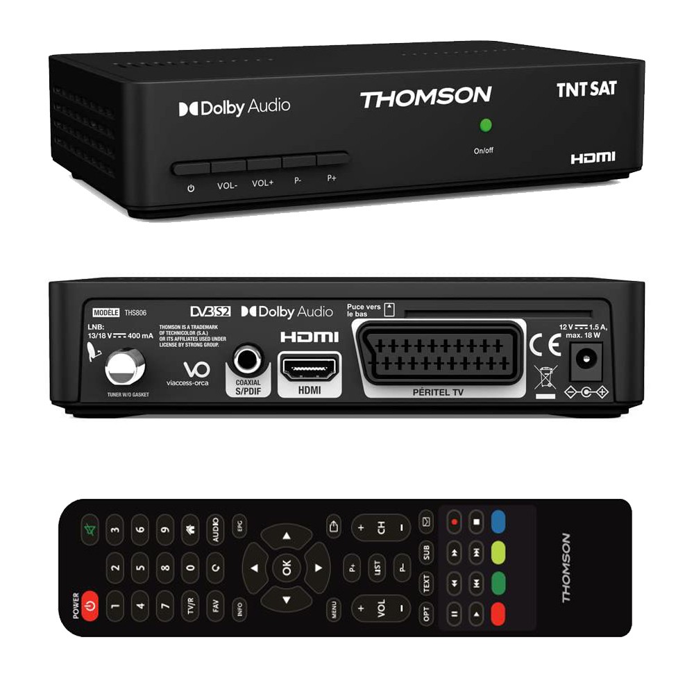 Le démodulateur satellite Thomson THS806 permet de recevoir la TNT HD via satellite avec TNTSAT, d’enregistrer vos programmes via USB, et offre une excellente qualité audio/vidéo, idéal pour la maison ou le caravaning.