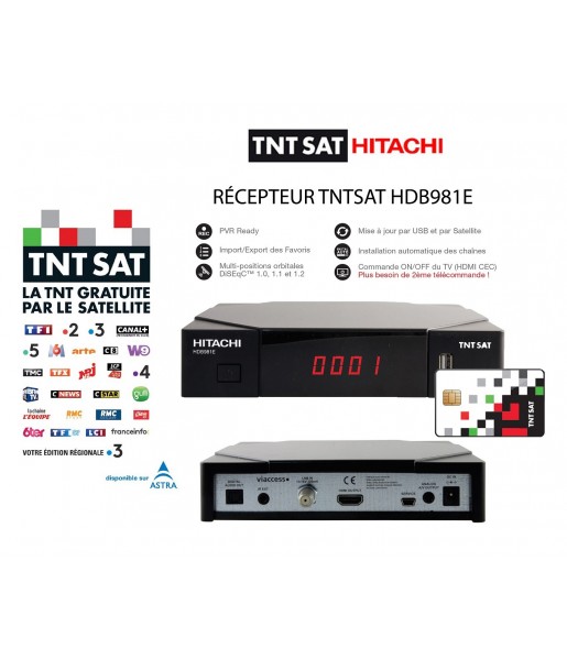 Récepteur Décodeur TNTSAT HDB981E – carte TNTSAT incluse, PVR Ready, Mise à jour par USB et par Satellite