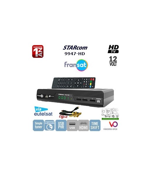 STARcom 9947 Terminal numérique HD - 12Volts - PVR via USB - HDMI - Ethernet - 1 lecteur de carte - Déport IR en option - avec carte Viaccess Fransat sur Atlantic Bird 3 + Cordon HDMI offert