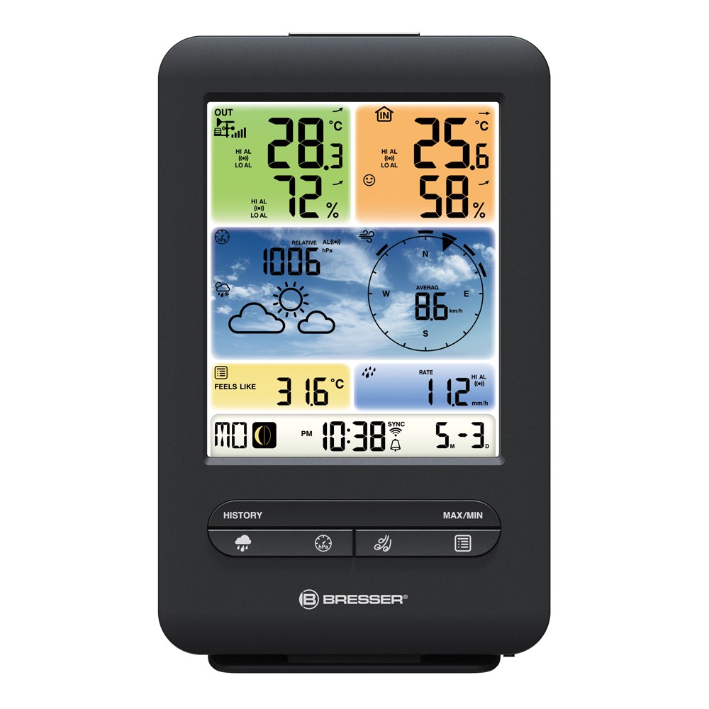 La Centrale Station météo ProfessionnelWIFI couleur 5-en-1 Verticale BRESSER 7002585 est l’outil idéal pour tous ceux qui souhaitent suivre les conditions climatiques locales avec fiabilité et simplicité. Conçue pour un usage aussi bien domestique que professionnel, elle combine technologie sans fil, design moderne et capteurs haute précision. Grâce à sa fonction WiFi et à son écran couleur clair, cette station météo vous permet de consulter vos relevés en temps réel, tout en partageant vos données sur des plateformes comme Weather Underground.