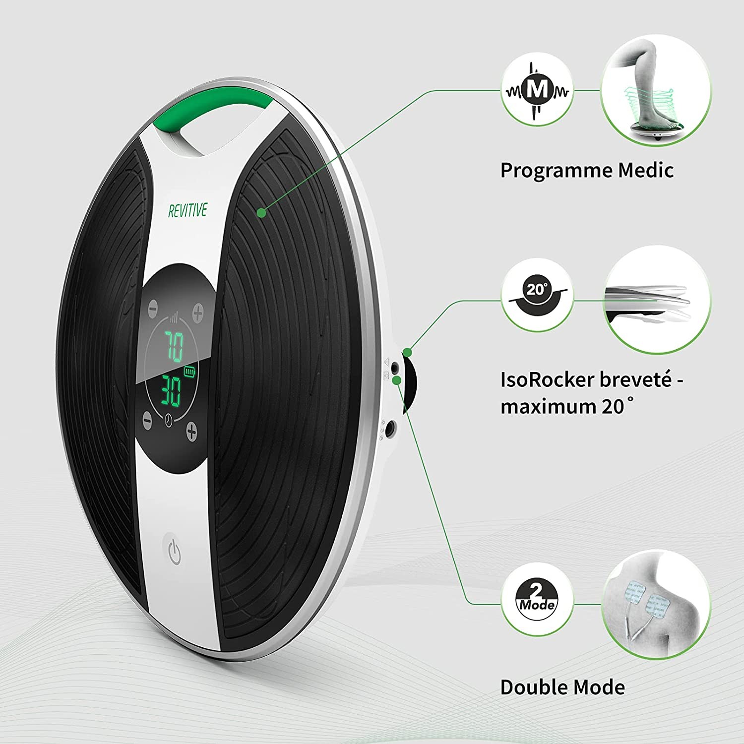 Le Stimulateur Circulatoire Revitive Medic Plus est un appareil médical innovant conçu pour améliorer la circulation sanguine et soulager efficacement les douleurs liées aux jambes lourdes, aux crampes et aux gonflements. Développé avec des kinésithérapeutes et des chirurgiens vasculaires, il utilise la technologie brevetée OxyWave® qui active les muscles des jambes comme une pompe naturelle, favorisant un flux sanguin riche en oxygène.