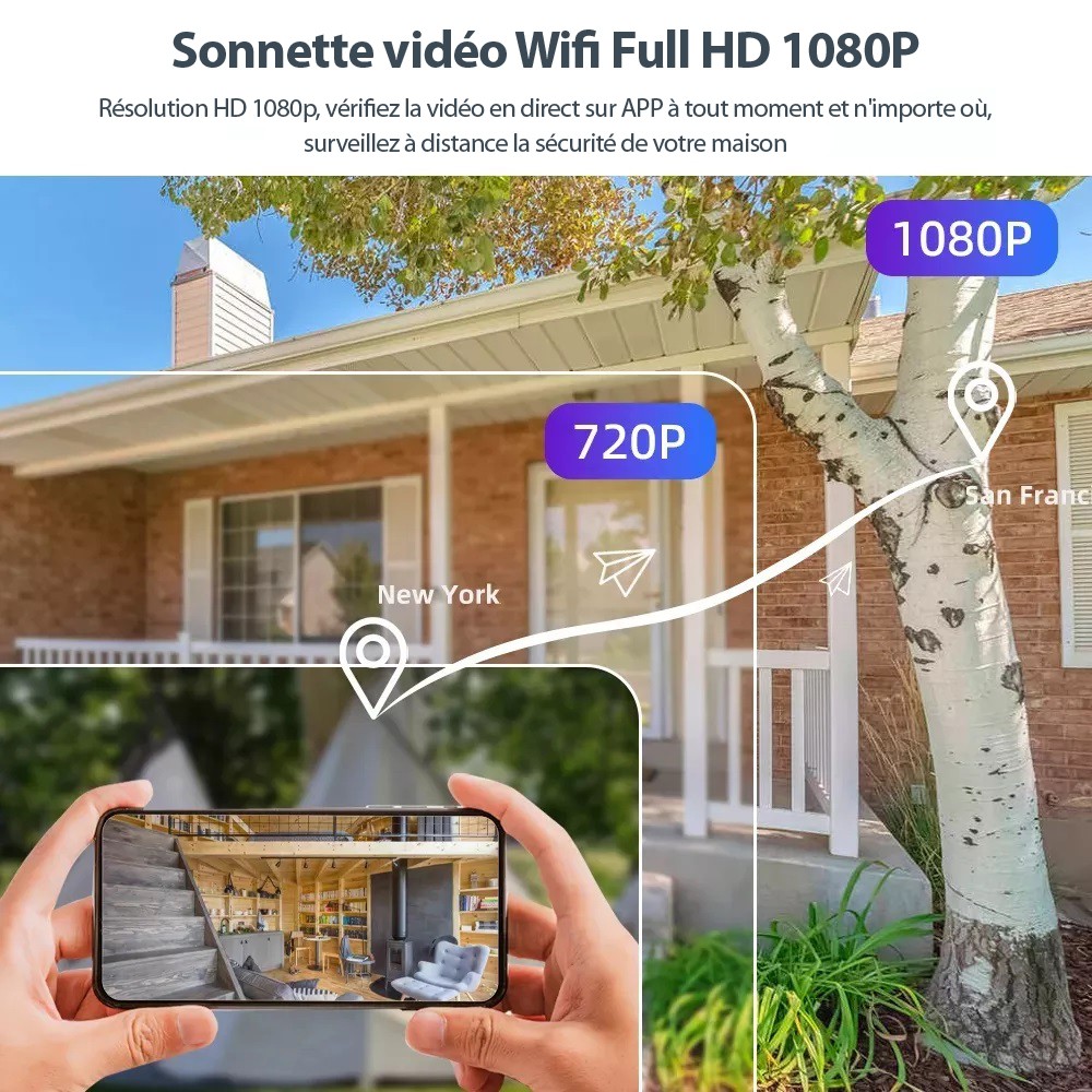 Judas de porte connecté 1080P WIFI avec Vision nocturne HD, Audio bidirectionnel + micro SD 64go