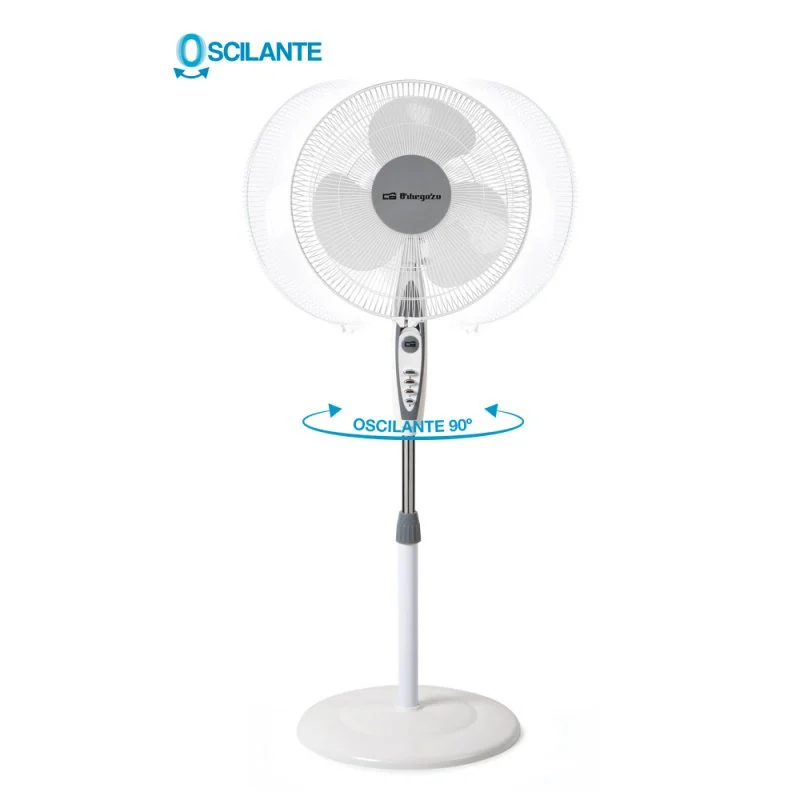 Ventilateur de sol Orbegozo, 3 vitesses, tête oscillante, Silencieux et facile à transporter