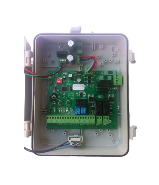 Armoire de commande avec ouverture totale ou piétonne, ralentissement fin de course, détection d’obstacle, réglage de la puissance moteur