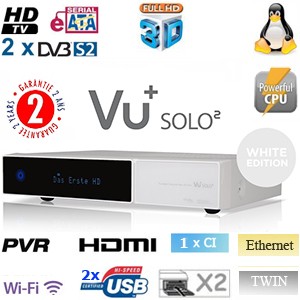 VU+ Solo 2 Blanc HD PVR - Terminal numérique HD, Linux, Twin Tuner, 2 Lecteurs De Carte, 3 USB, Ethernet